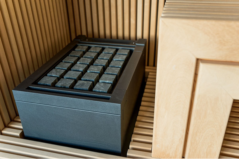 - varmelegemet har unikke kubeformede sten, men det var desuden udstyret med jadeitsten (40 kg) - for konstant temperaturvedligeholdelse og behagelig nydelse af saunaen