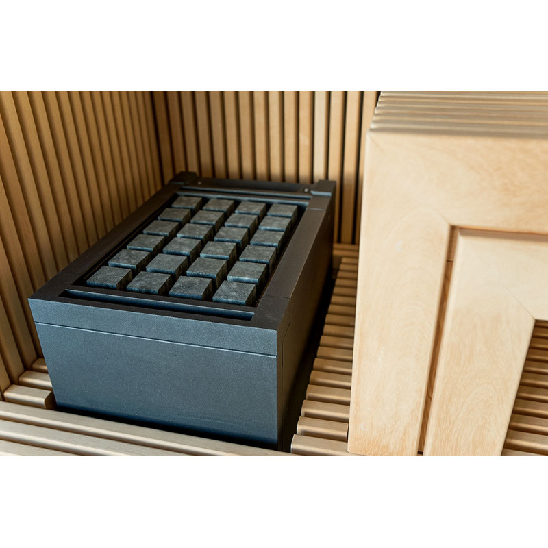 - elektrisk saunavarmer EOS Mythos S45 Vapor med dampgenerator, velegnet til opvarmning af små og mellemstore saunarum