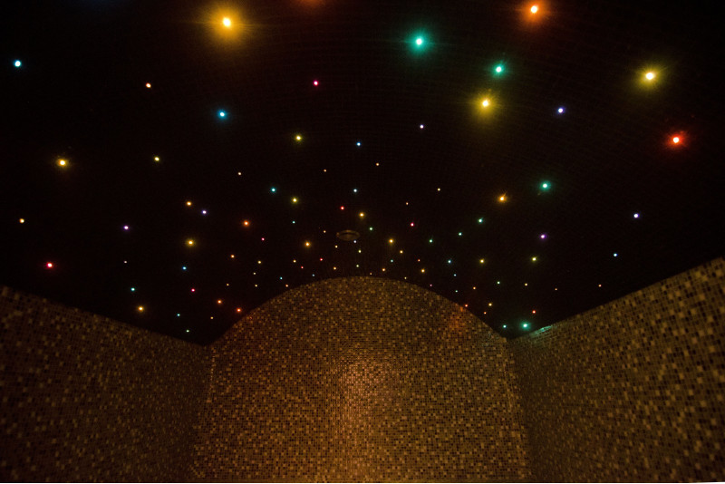 Belysning - et imponerende fiberoptisk system "stjernehimmel". Det ser især flot ud med et mørkt loft. Farven på belysningen kan ændres.