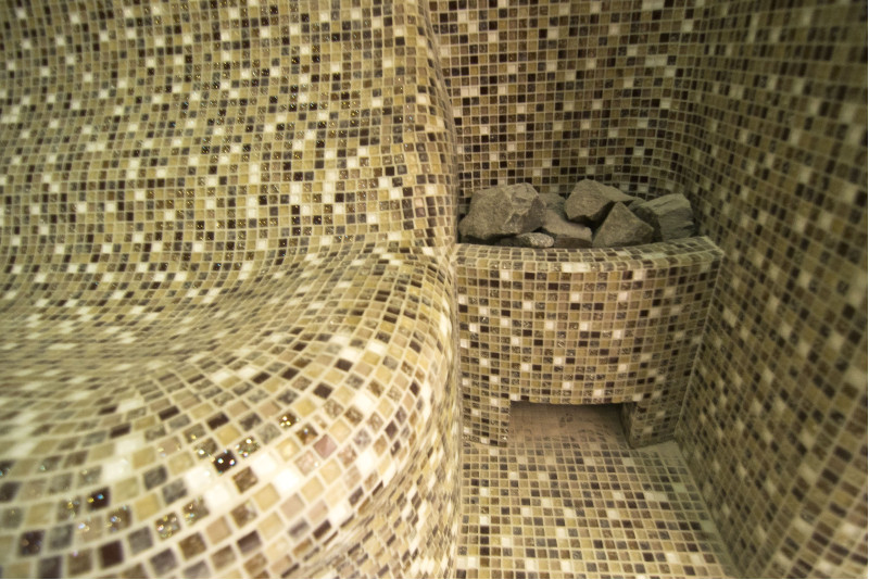 Dampsaunabænke, vægge og lofter fremstilles individuelt efter kundens ønske af speciel ekstruderet polystyren.