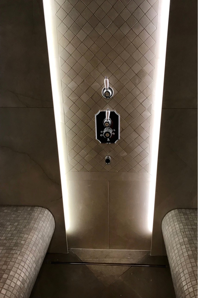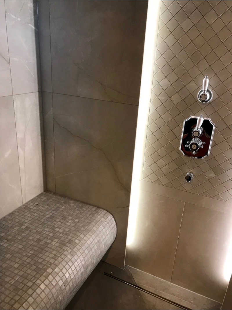 Elektrisk opvarmede gulve og bænke giver ekstra komfort i den opvarmede sauna.