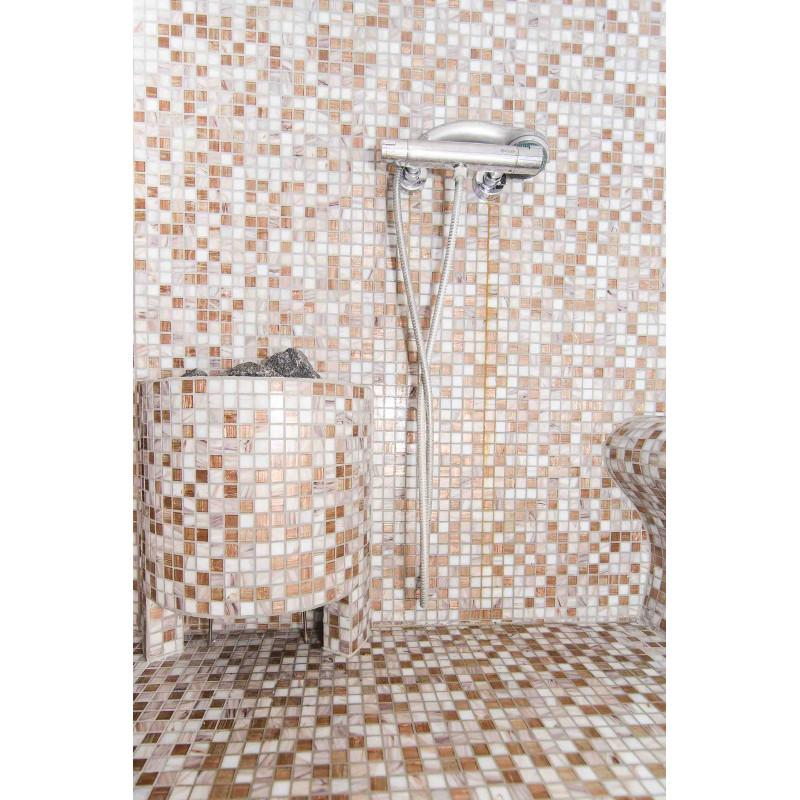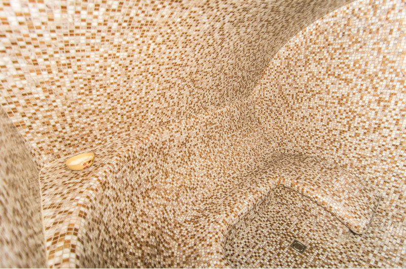 Finish - neutralfarvede mosaikfliser af knust glas.