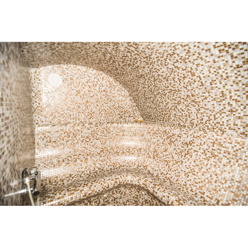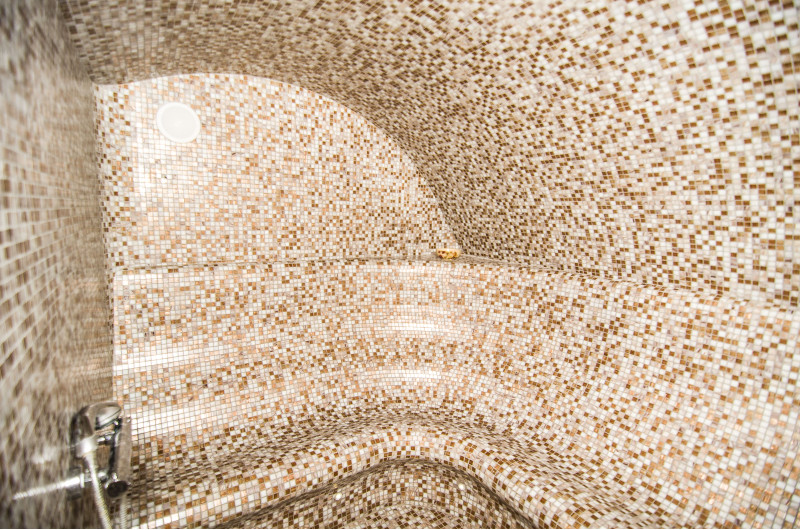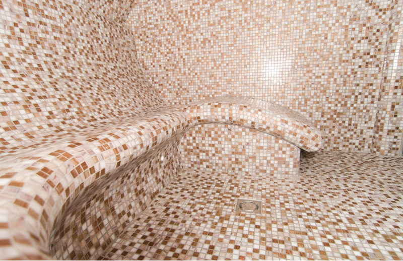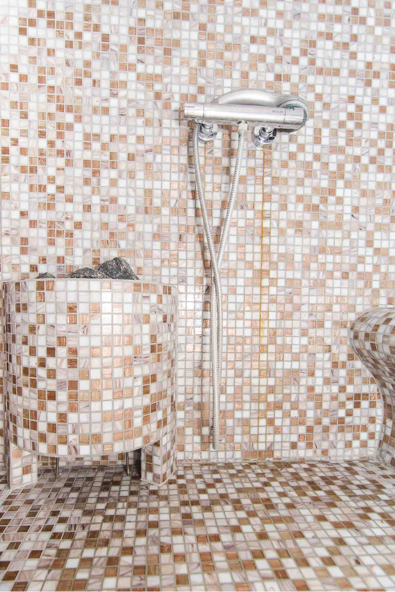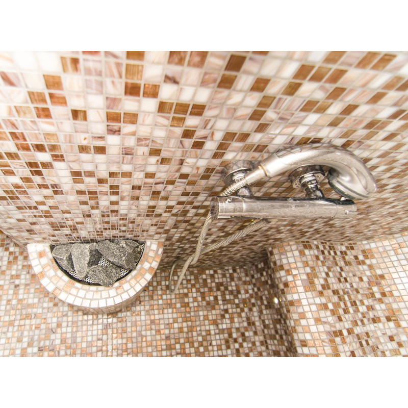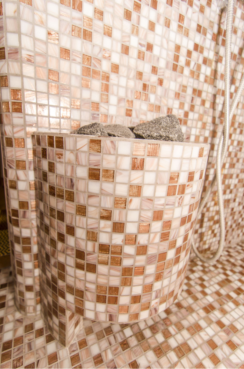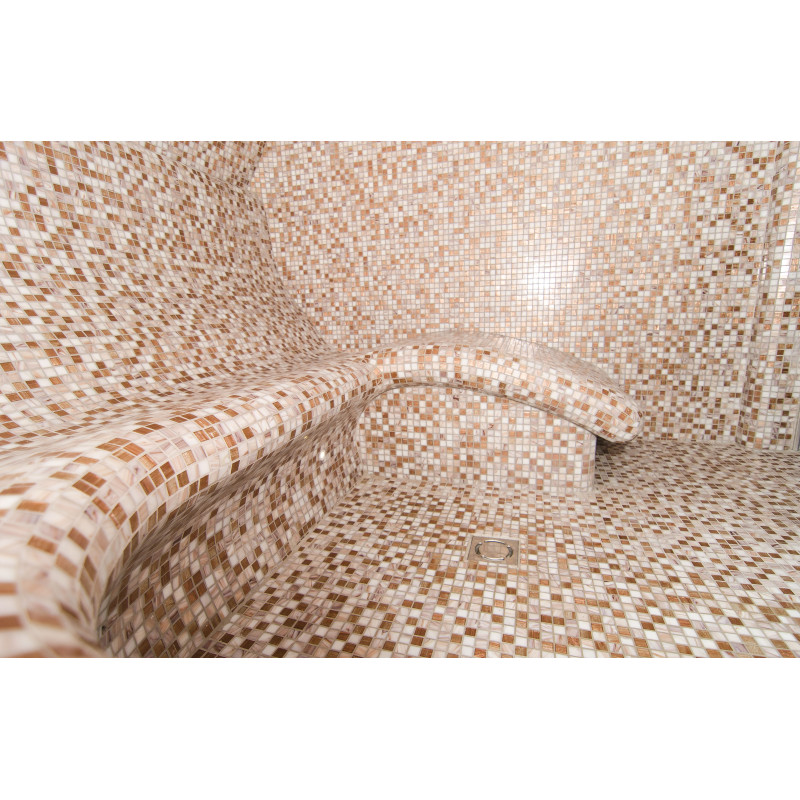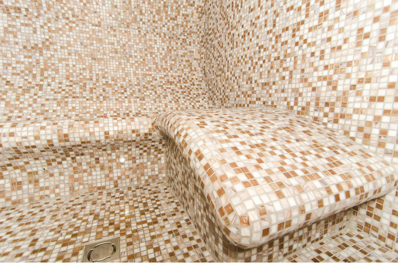 Dampsaunabænke, vægge og lofter er lavet individuelt af speciel ekstruderet polystyren. Loftet har en bueform, der er typisk for alle dampsaunaer.