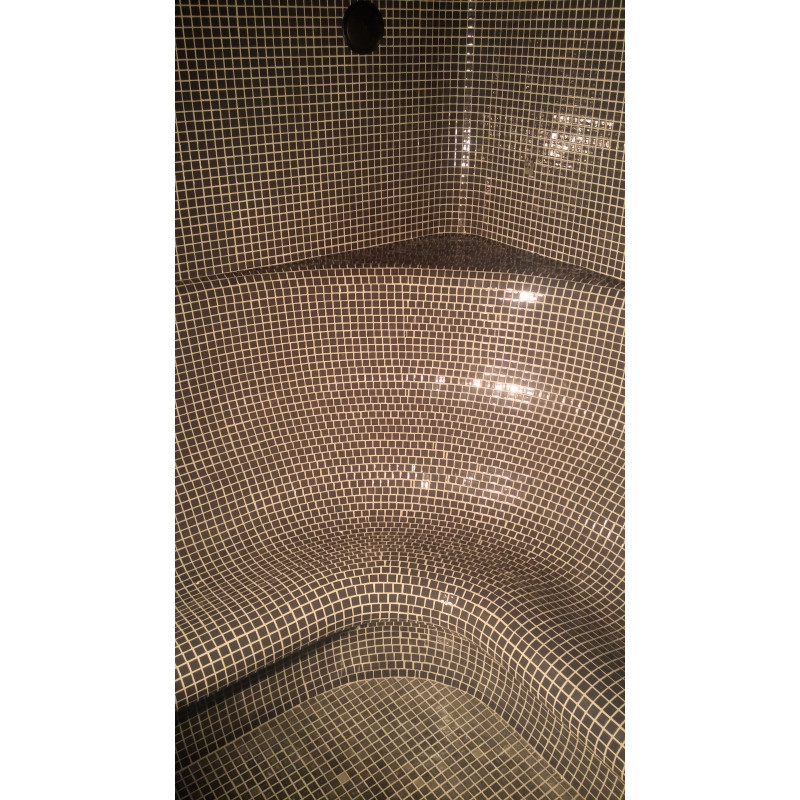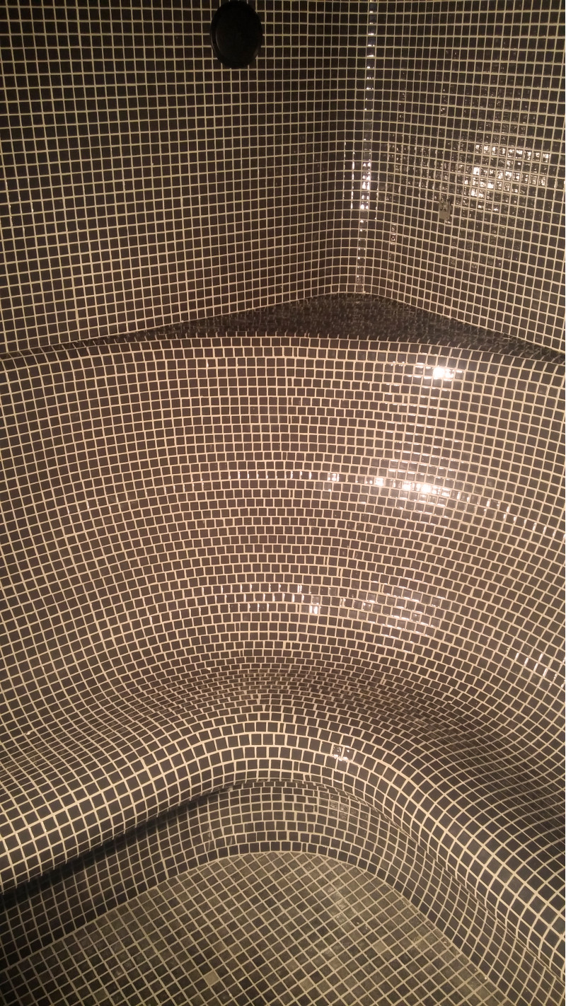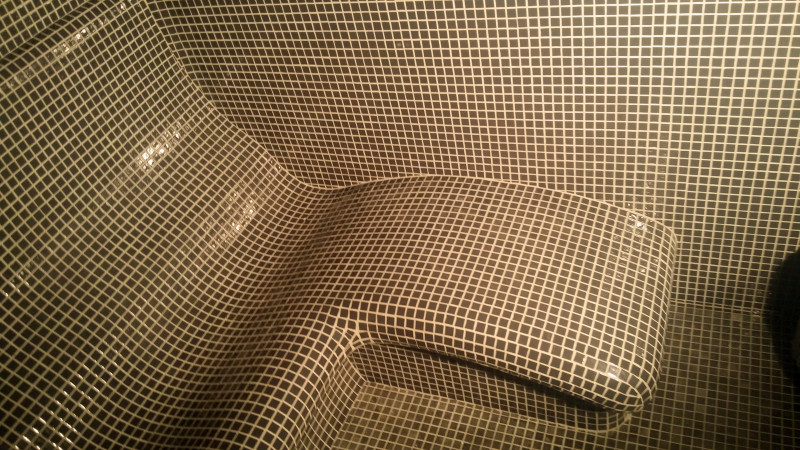 Efterbehandling - hele saunaen er dekoreret med knust glasmosaikfliser.