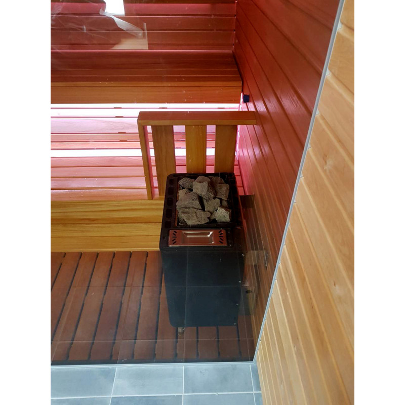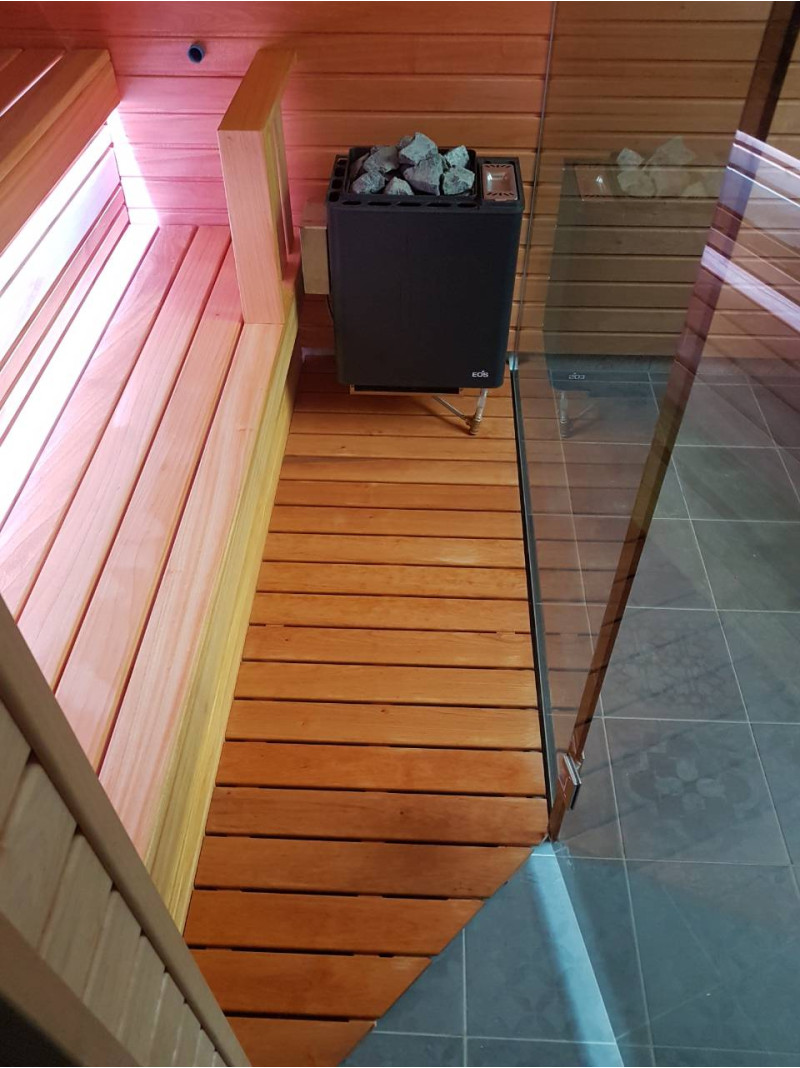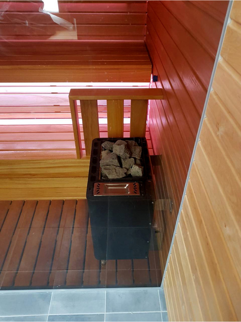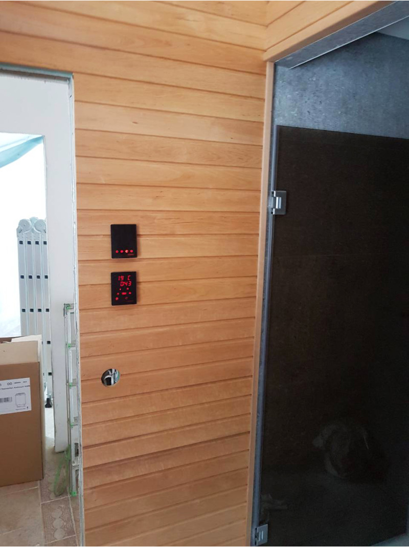Dette saunaprojekt kombinerer to saunatilstande - infrarød og dampsauna. Tilstanden kan nemt indstilles med kontrolpanelet bygget uden for saunaen.