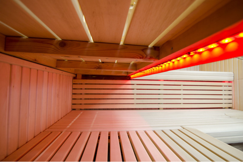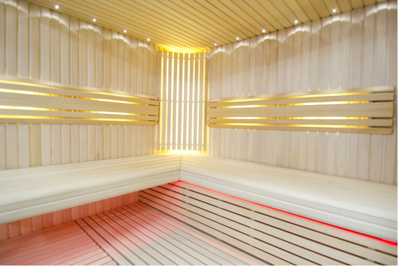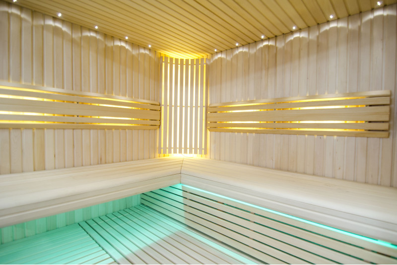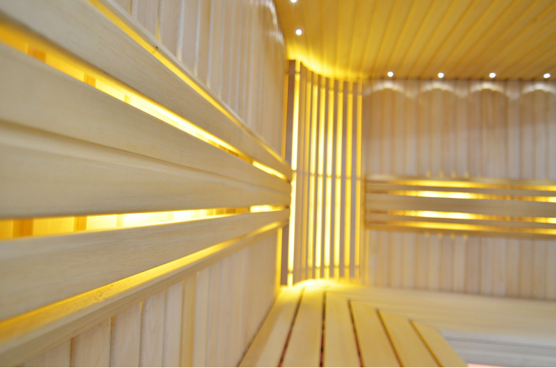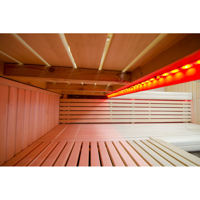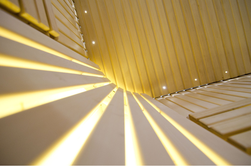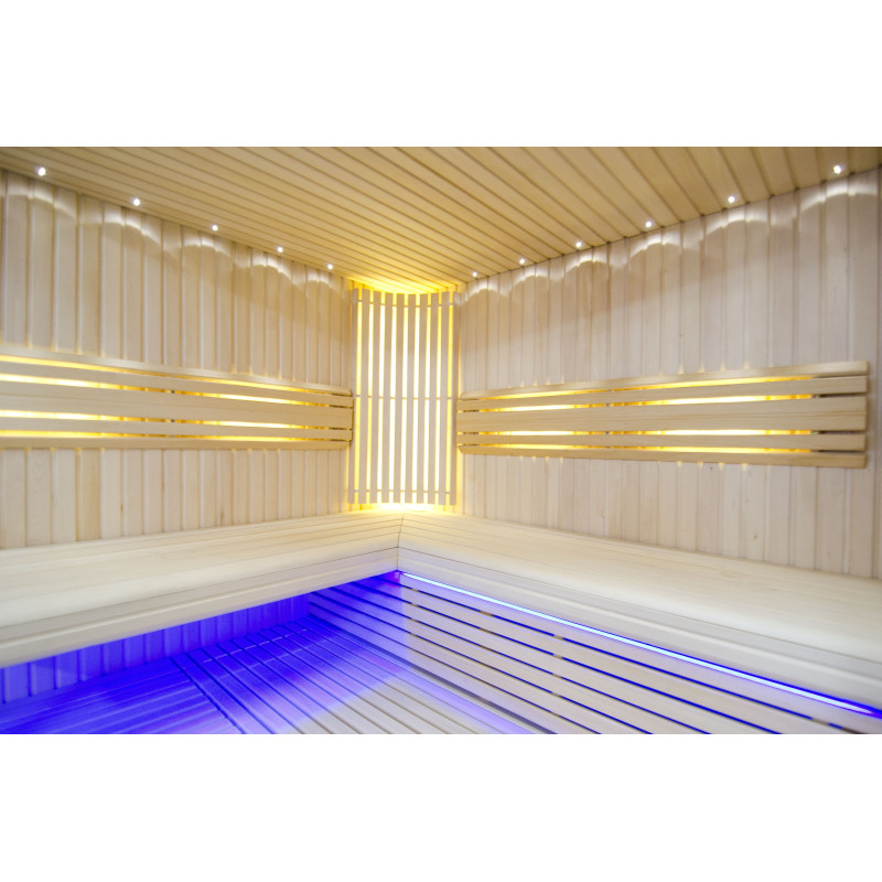 Væggene er lavet af lys lindetræ af højeste kvalitet, og bænke og ryglæn er lavet af afrikansk abachi træ, som ikke varmer meget op, hvilket gør det særligt behageligt og behageligt at sidde på.