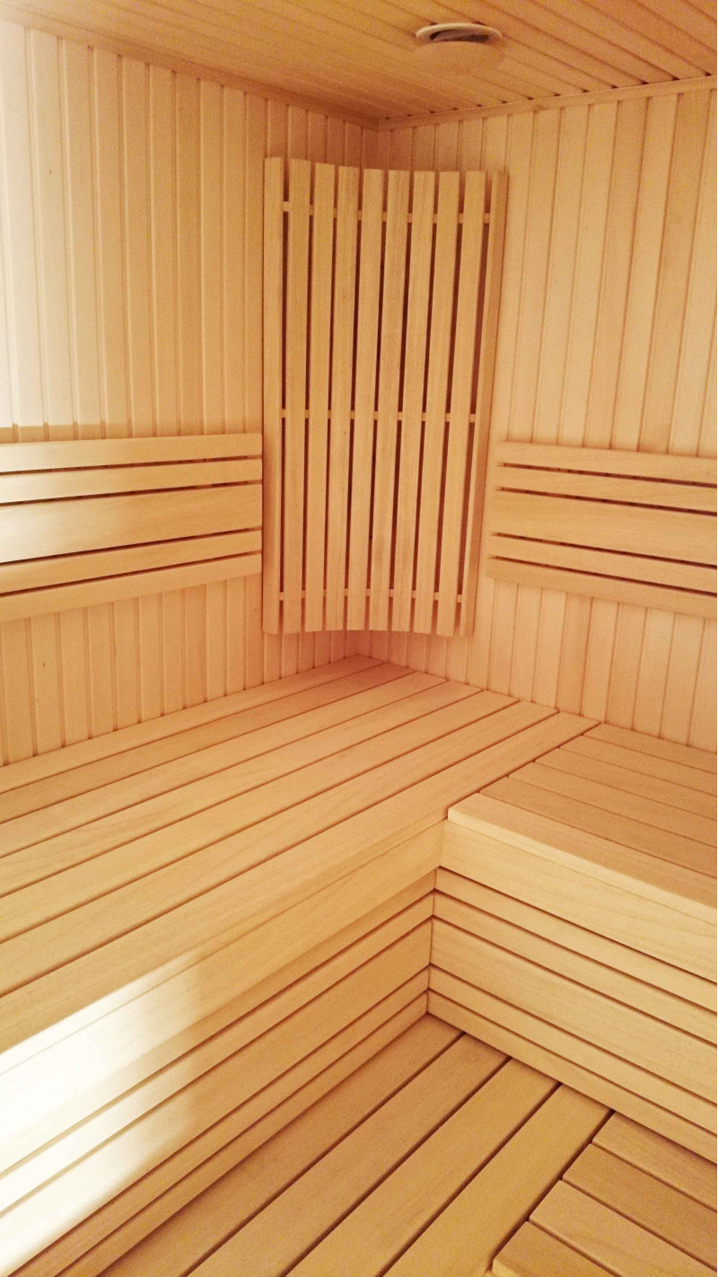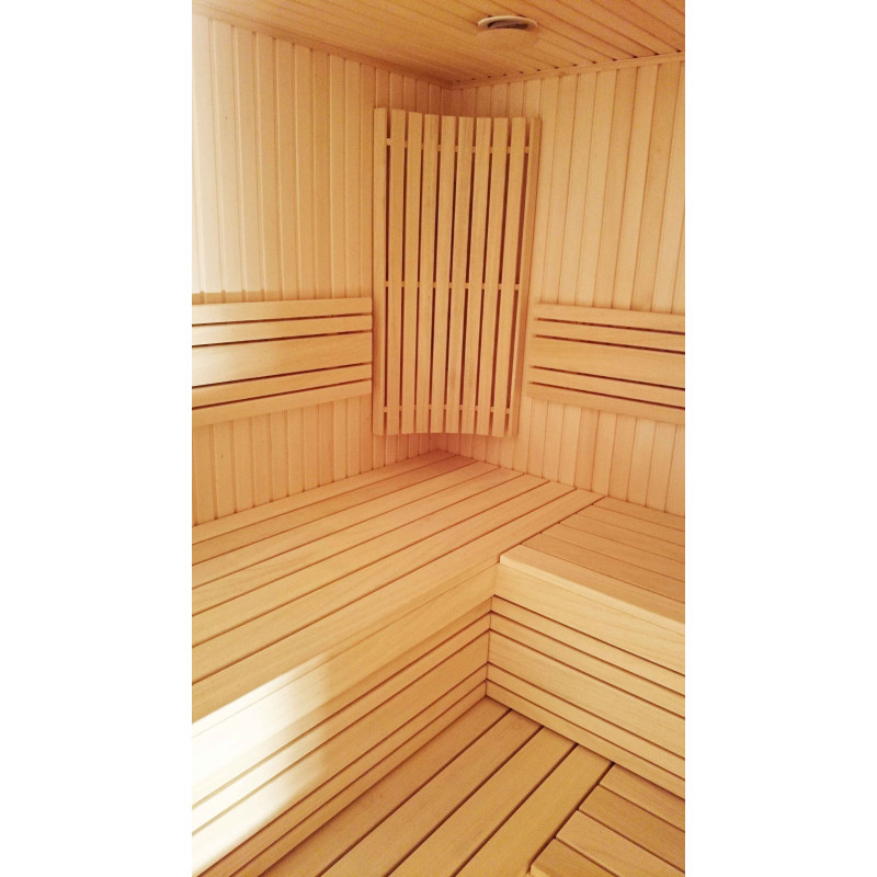 Saunas lofter og vægge er dækket af lindesider, lige som understøtninger, gulvriste og varmelegemer. Saunastole er af abachi -træ af højeste kvalitet. Træ til senge, understøtninger og vægge er imprægneret og lakeret, olieret - specielt forberedt til brug i varme og fugtighed.