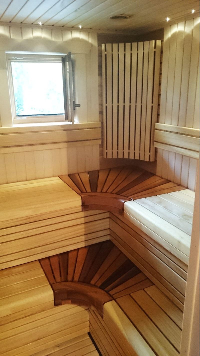 Vinduet i saunaen giver mere lys og øger saunaens plads.