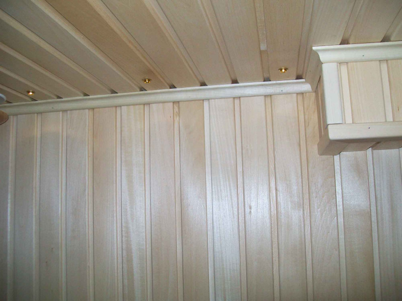 Væggene er beklædt med en speciel vandbaseret saunalak, bænkene er imprægneret med paraffinolie. Lak beskytter træ mod friktion, varme, har ikke en ubehagelig duft. Paraffinbelagt træ er lettere at rengøre og vedligeholde.
