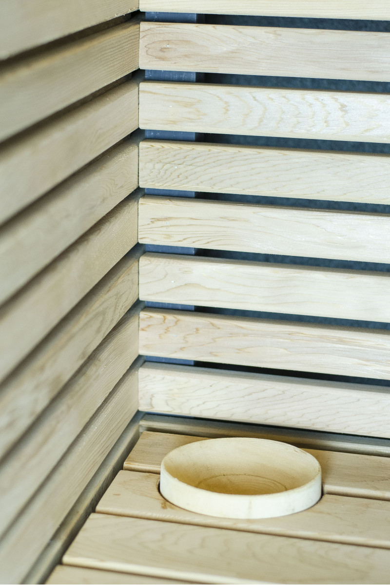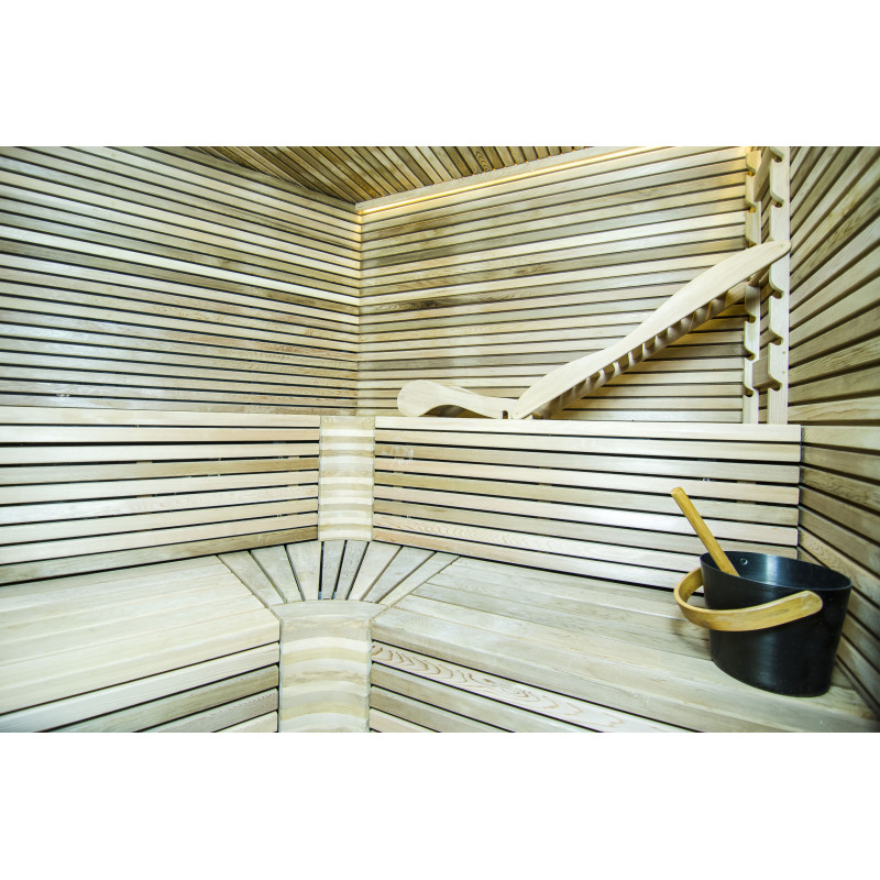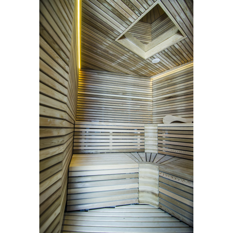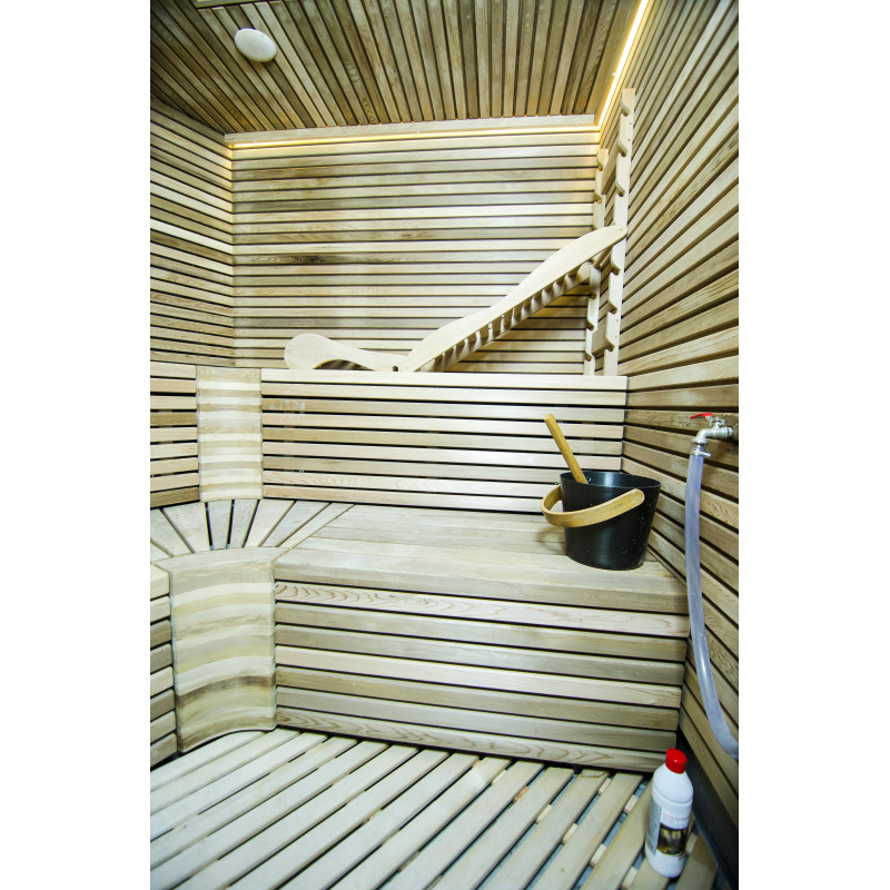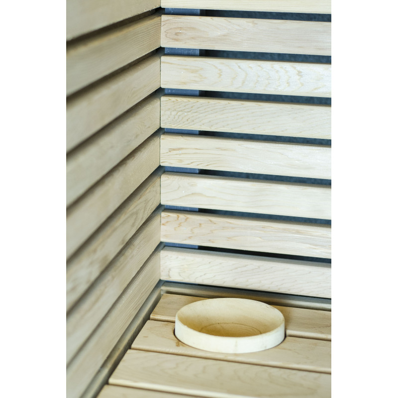 Saunaens vægge og bænke er lavet af cedertræ af højeste kvalitet.