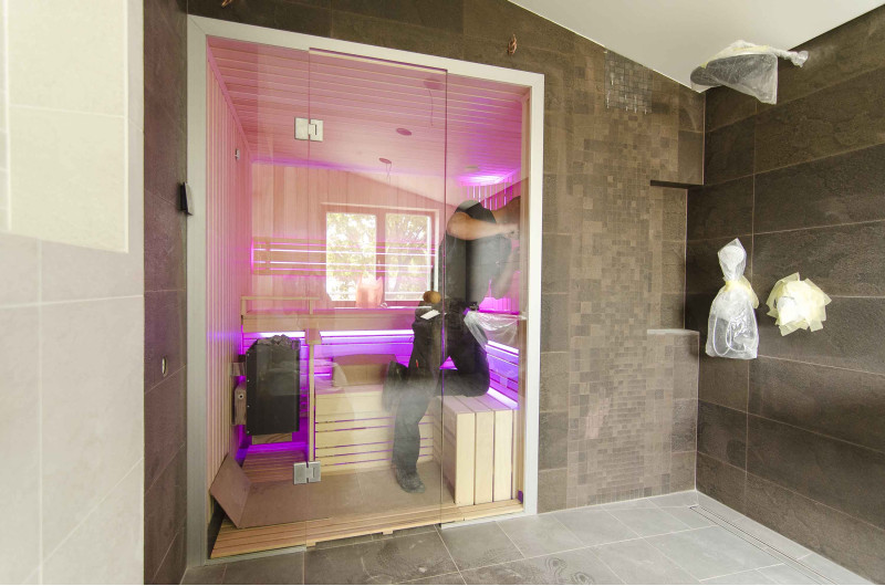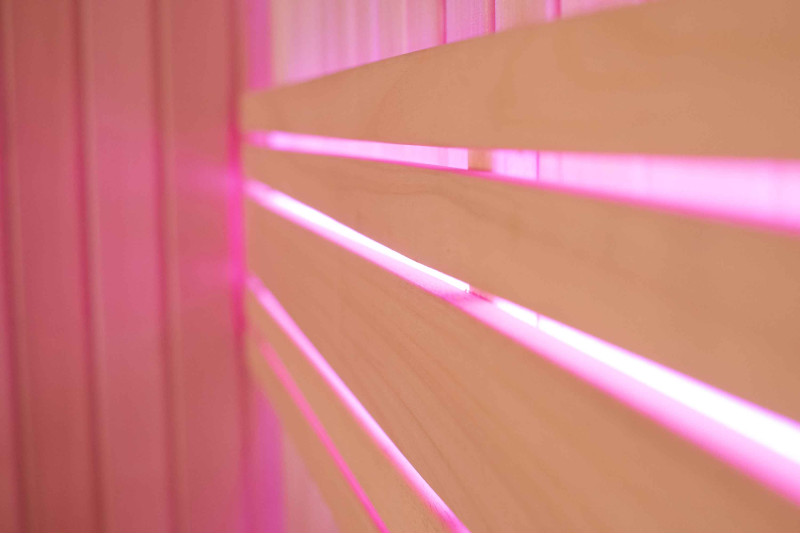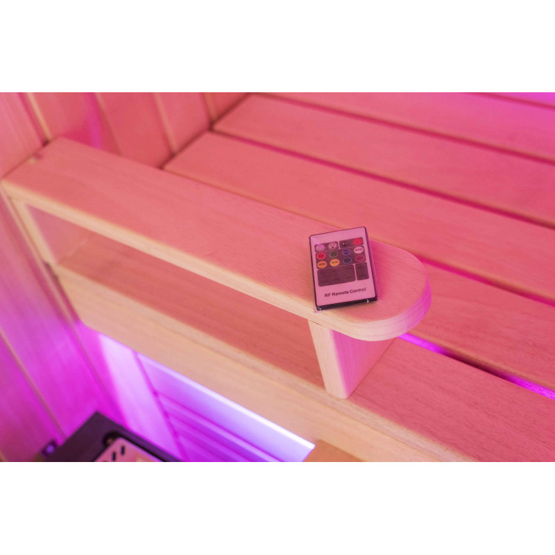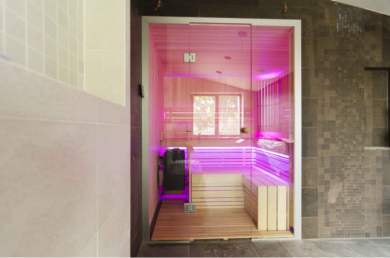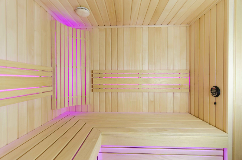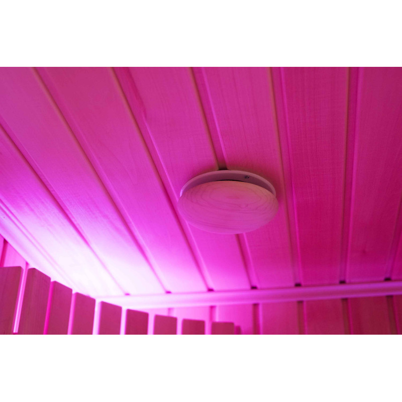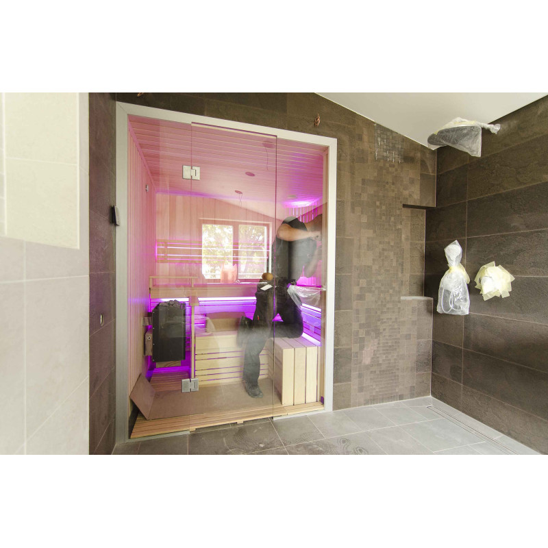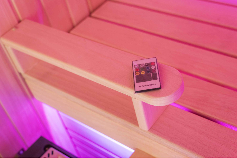 Det indre af saunaen er lavet af lindetræ af højeste kvalitet, solsenge er lavet af abachitræ - ikke -opvarmende og perfekte til saunaen.