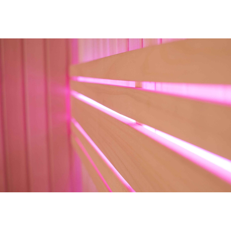 LED -farvebelysning under solsenge og ryglæn er justerbar på panelet. Du kan ændre farveområdet og intensiteten manuelt eller automatisk.