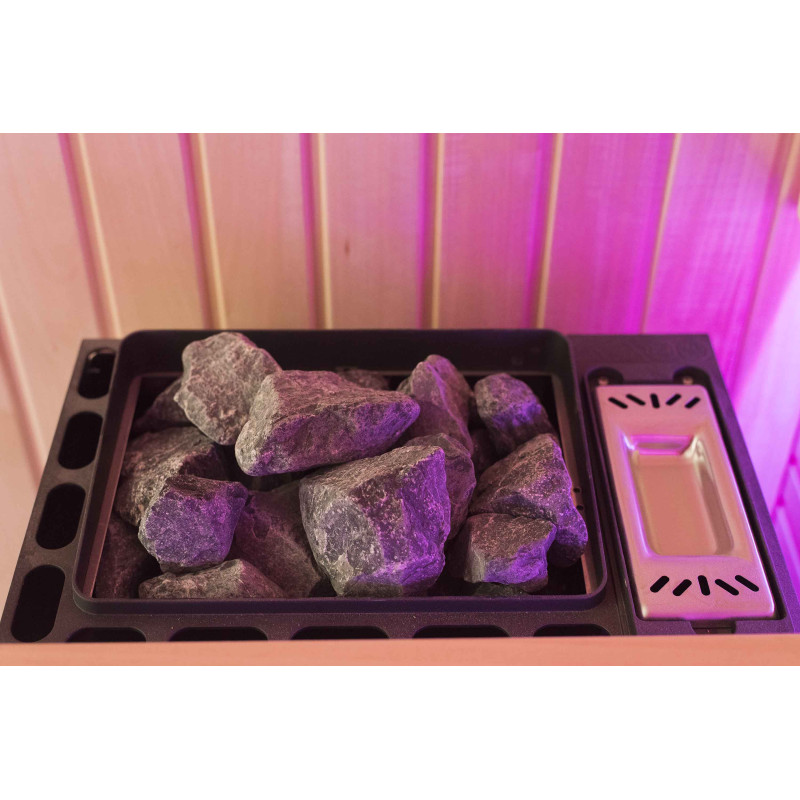Elvarmer model - EOS Bi -O Thermat med dampgenerator. Varmeren hænges på væggen og styres af et separat kontrolpanel - Harvia Xenio Combi.