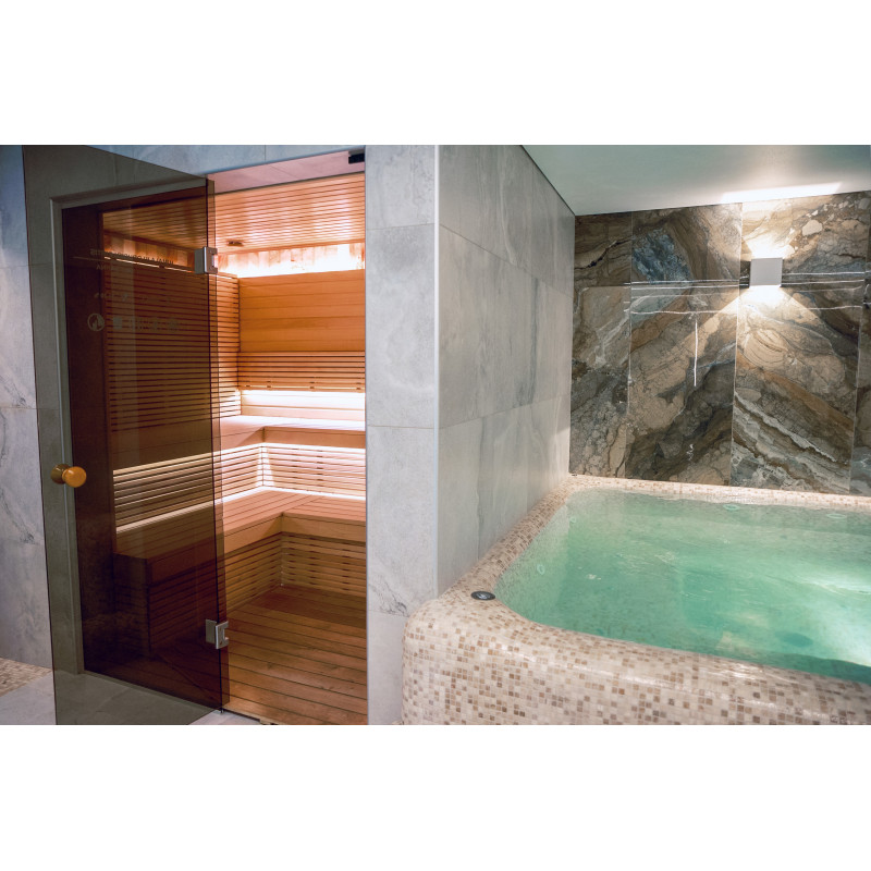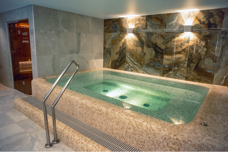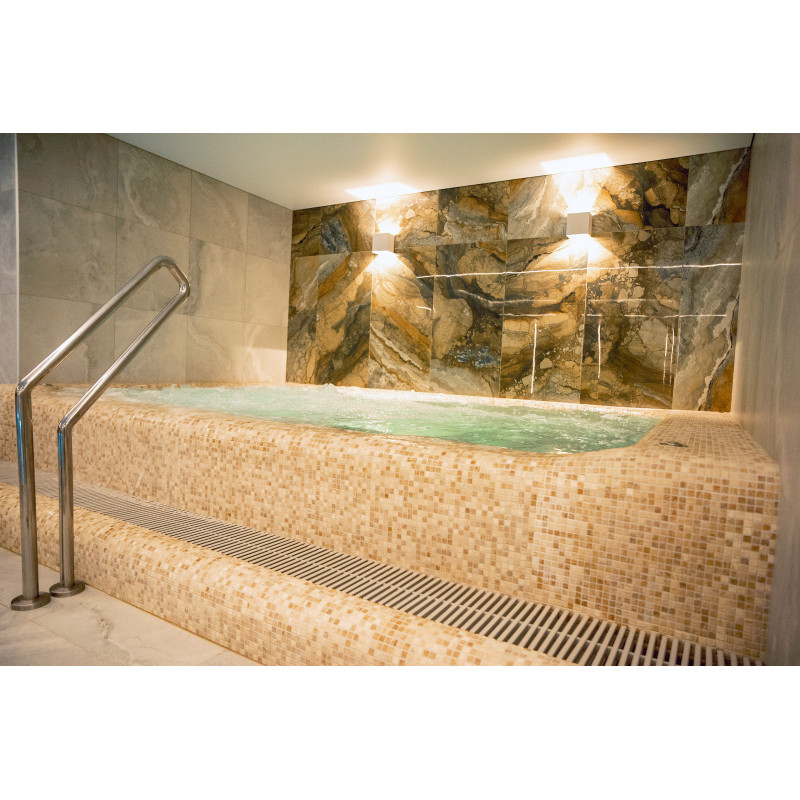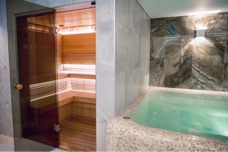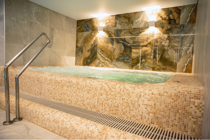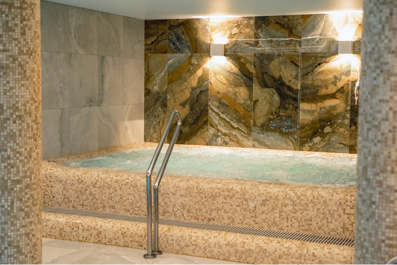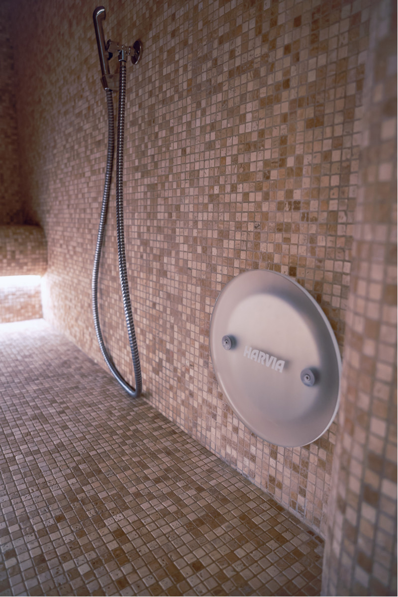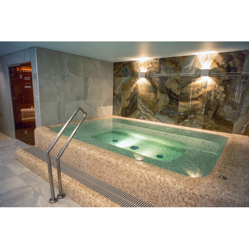 Komplekset omfatter et dampbad, en sauna, en isgenerator og en pool med massagestråle og spabad.