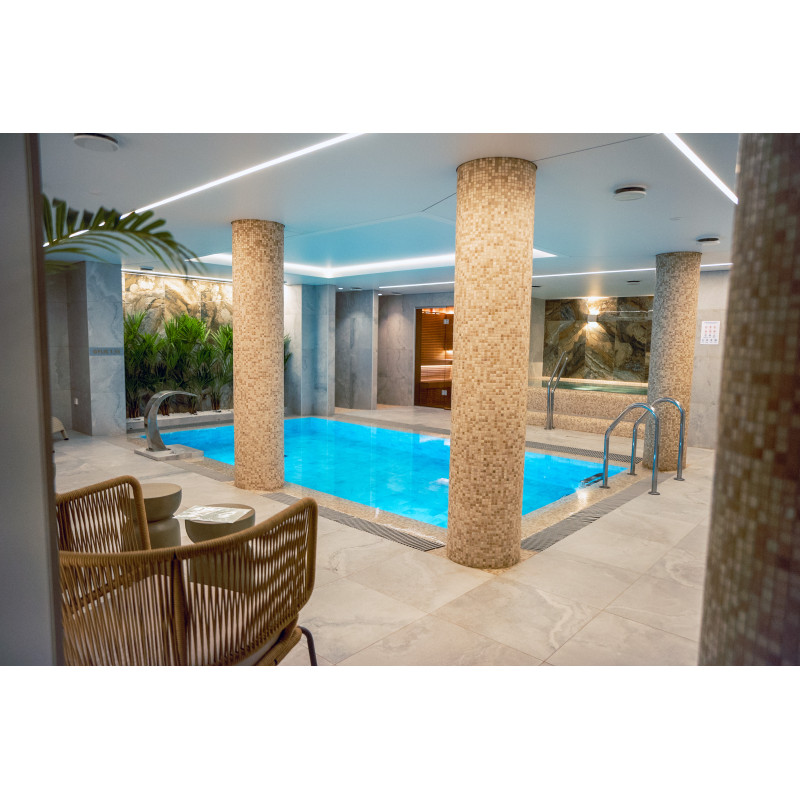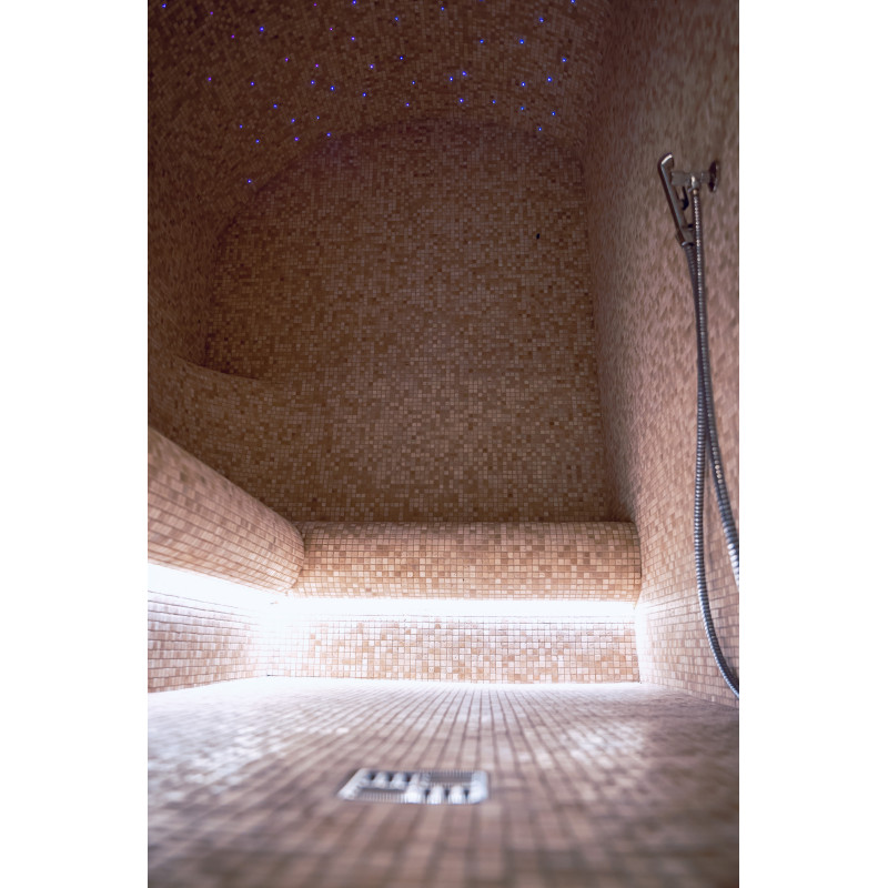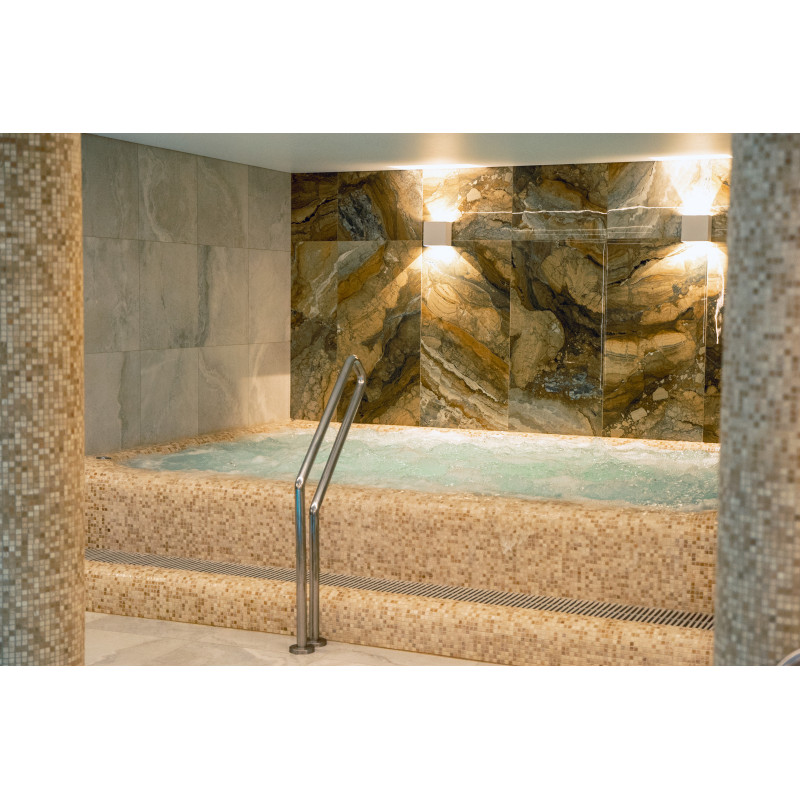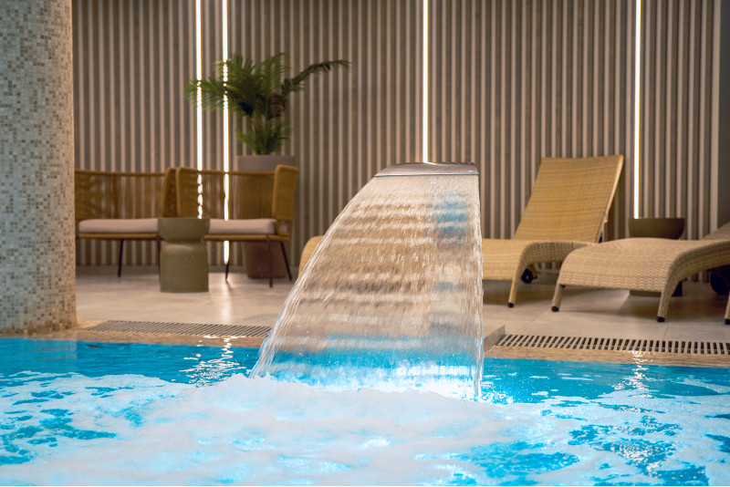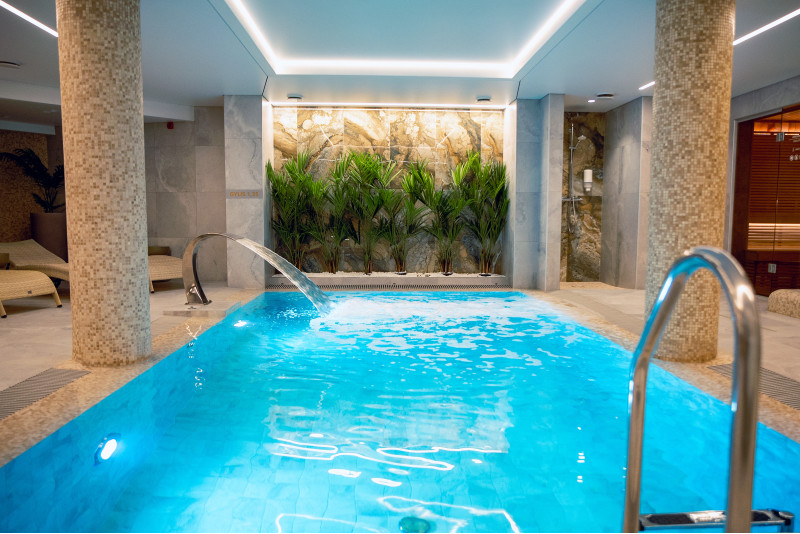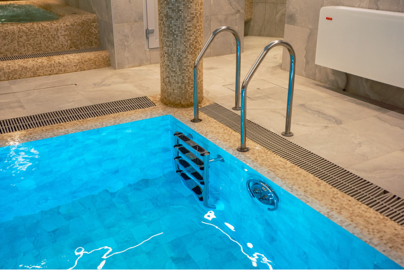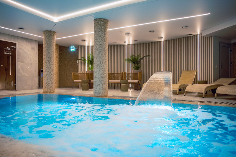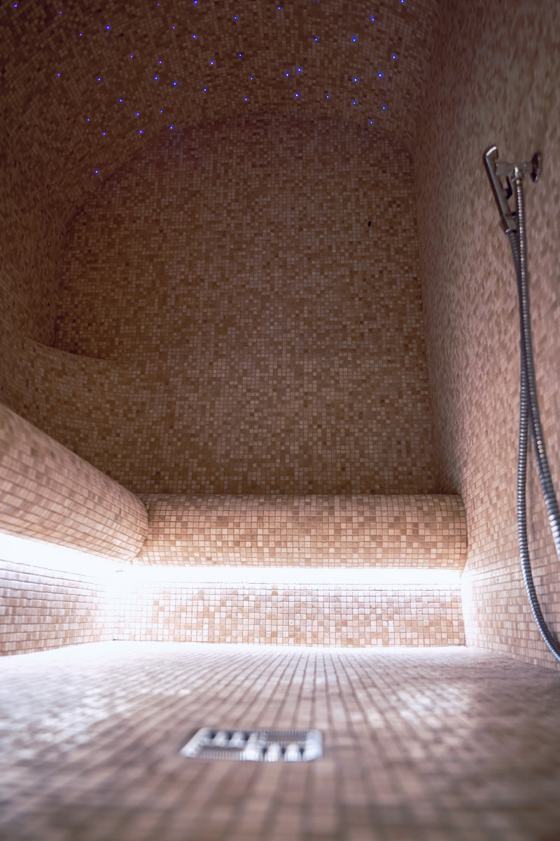 Komplekset omfatter et dampbad, en sauna, en isgenerator og en pool med massagestråle og spabad.