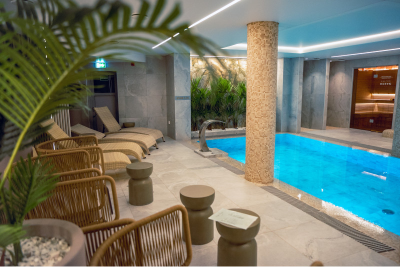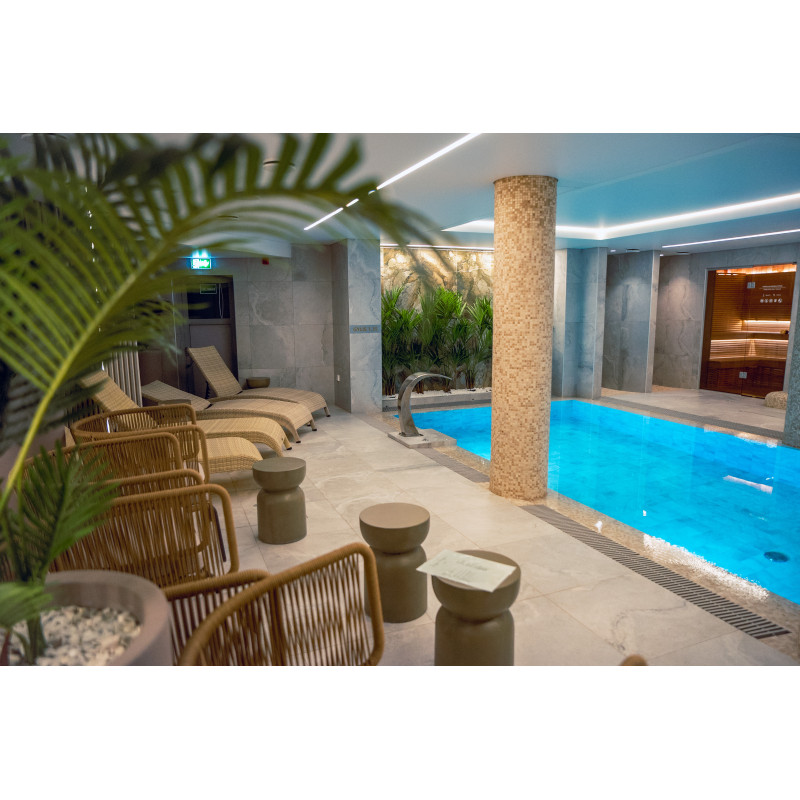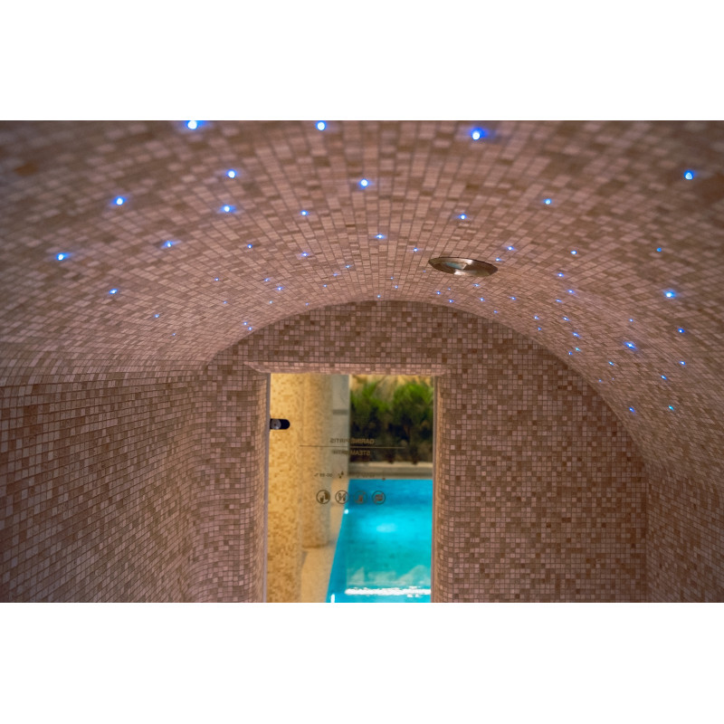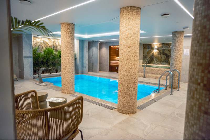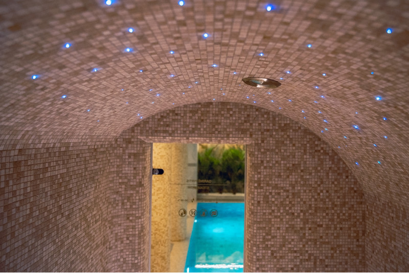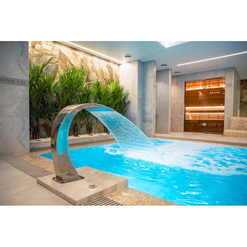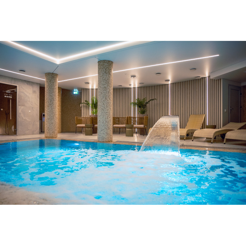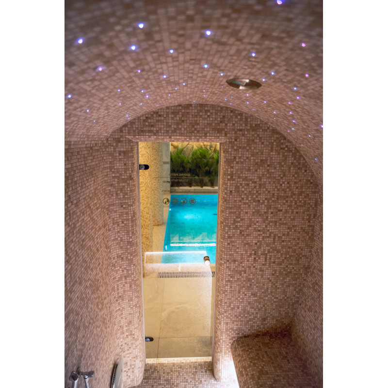 Komplekset omfatter et dampbad, en sauna, en isgenerator og en pool med massagestråle og spabad.