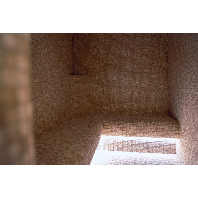 De indvendige overflader er støbt af ekspanderet polystyren ved hjælp af kontinuerligt skåret XPS-styren. En loftbue dannes. Mosaikfliser udlagt. Der er installeret et ventilationsanlæg.