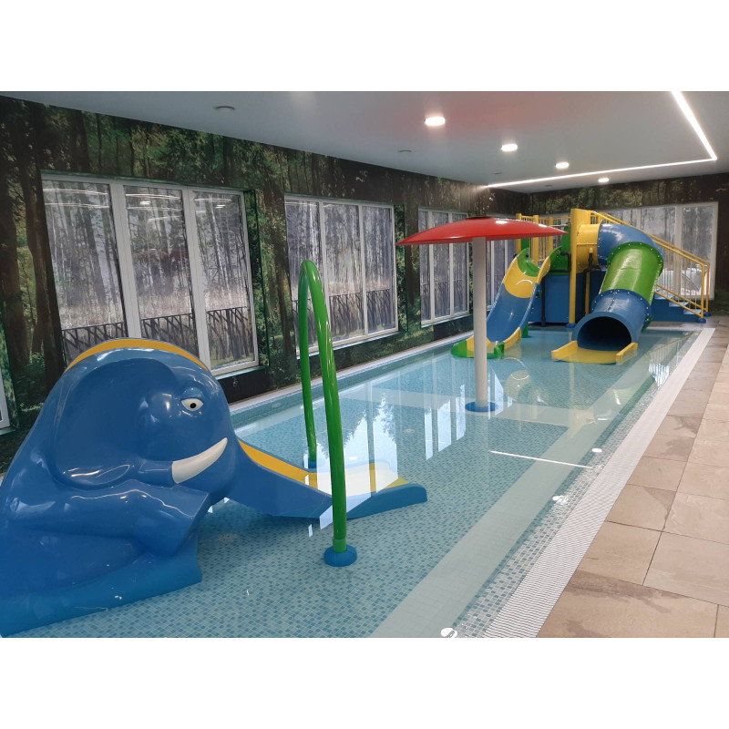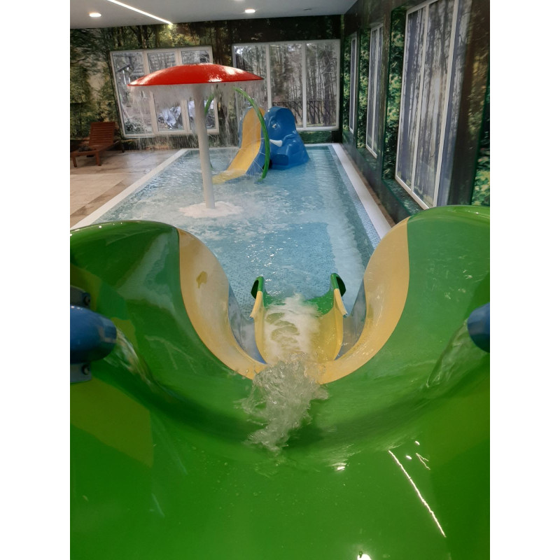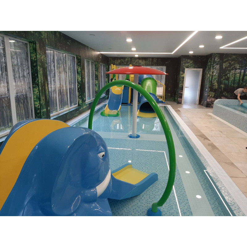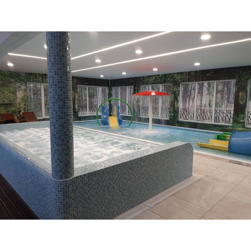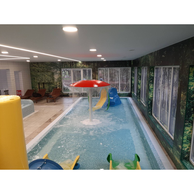 - Svømmebassin (6m lang) med kaskader, undervandsgejsere.