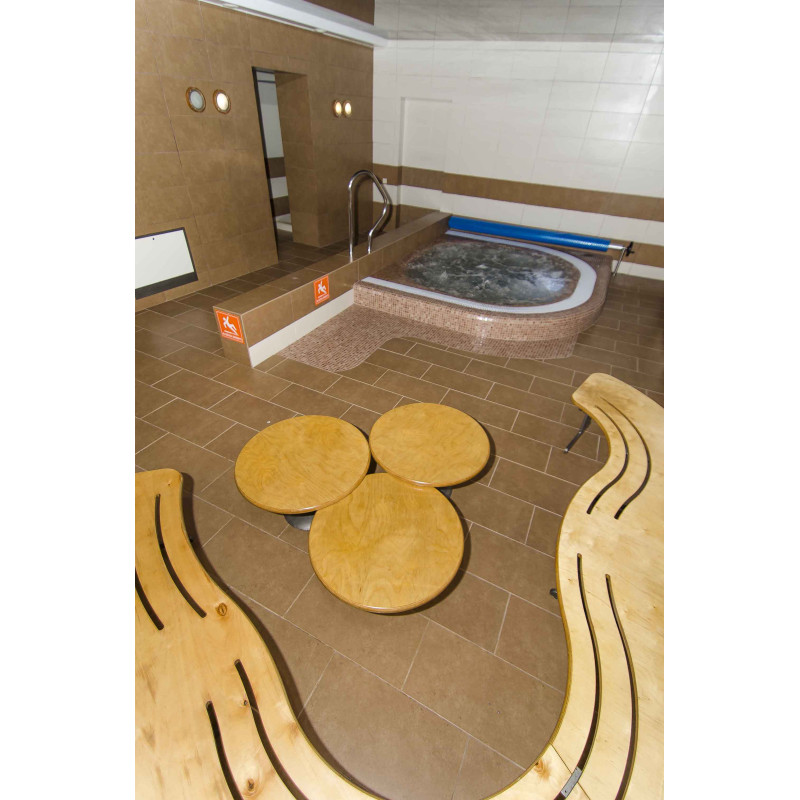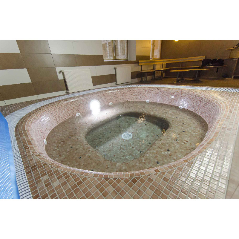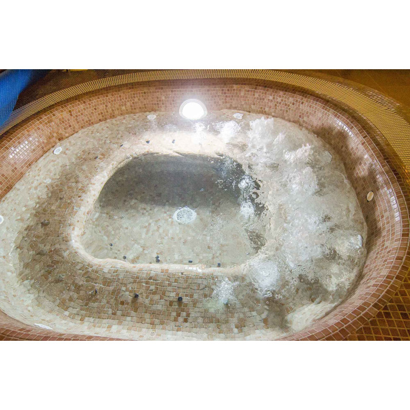 Formerne til spabadet er lavet af speciel ekstruderet polystyren, efter individuel bestilling. Poolen kan rumme mange mennesker ad gangen, da der er arrangeret siddepladser rundt om hele poolen.