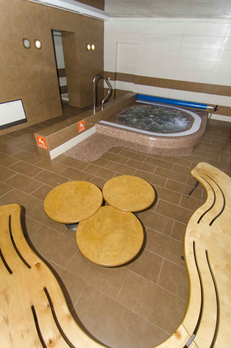 I det rekreative område på et af de største hoteller i Palanga er der sammen med saunaer et hydromassagebad.